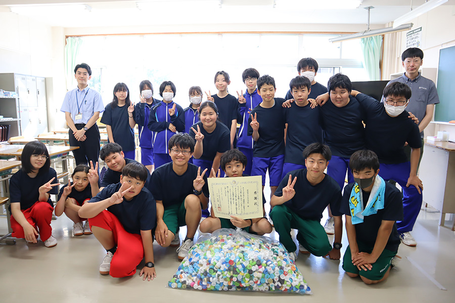 2024年、弊社はコンサドーレ札幌のPASSパートナーとして、PASSプロジェクトの一環でペットボトルのキャップからリサイクルされた黒板消しを釧路市内の全小学校へ寄贈致しました。